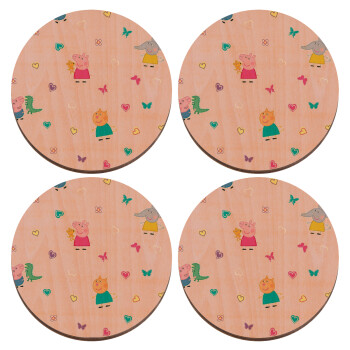 Πέππα το γουρουνάκι και οι φίλοι της, ΣΕΤ x4 Σουβέρ ξύλινα στρογγυλά plywood (9cm)