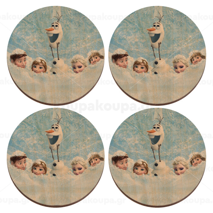 Ψυχρά κι ανάποδα Όλαφ και οι φίλοι του, ΣΕΤ x4 Σουβέρ ξύλινα στρογγυλά plywood (9cm)