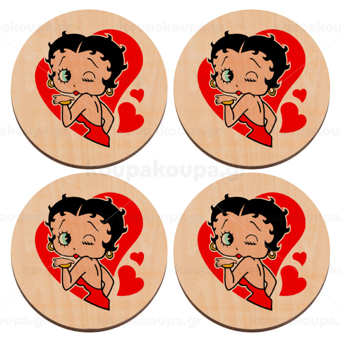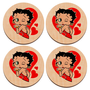 Betty Boop, ΣΕΤ x4 Σουβέρ ξύλινα στρογγυλά plywood (9cm)