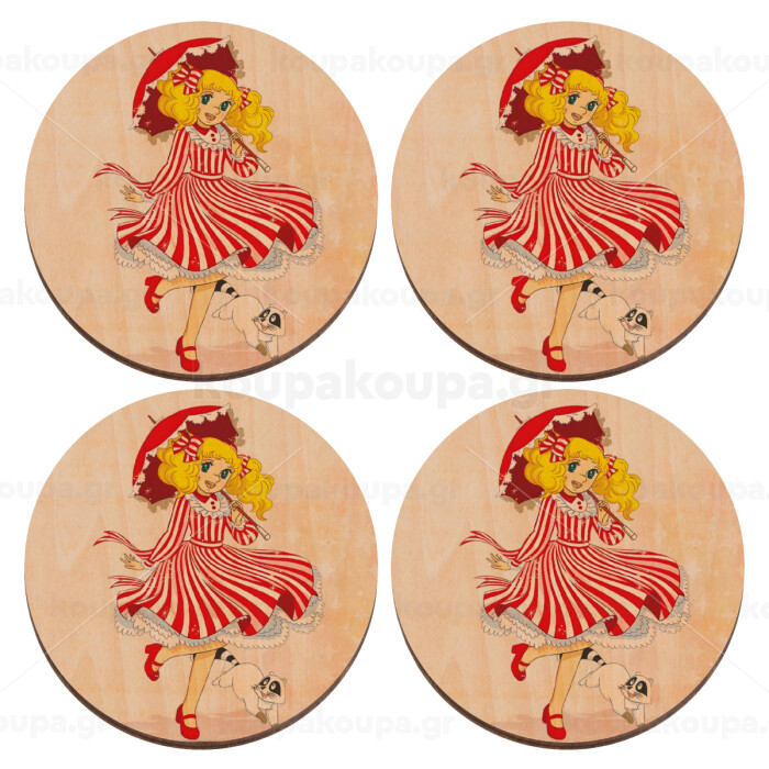 Candy, ΣΕΤ x4 Σουβέρ ξύλινα στρογγυλά plywood (9cm)