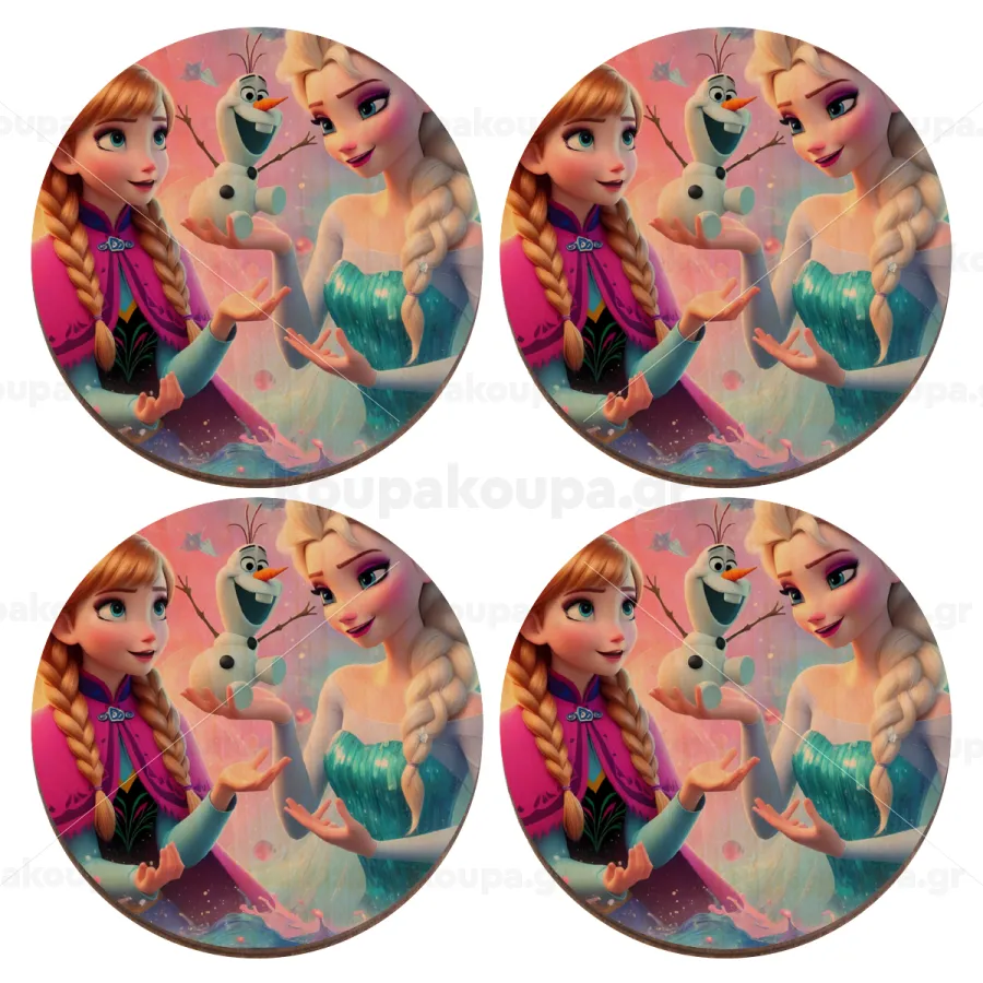 Έλσα & Άννα, ΣΕΤ x4 Σουβέρ ξύλινα στρογγυλά plywood (9cm)