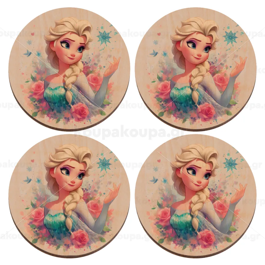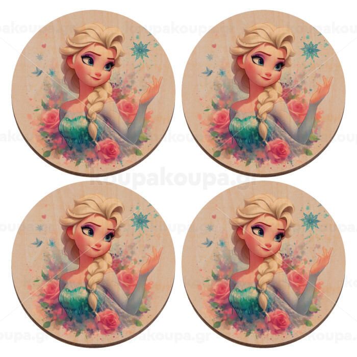 Elsa Princess, ΣΕΤ x4 Σουβέρ ξύλινα στρογγυλά plywood (9cm)