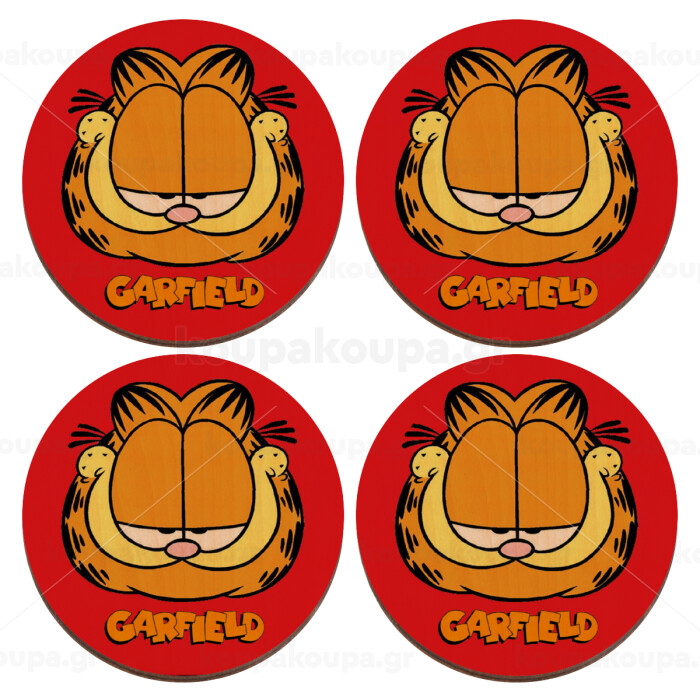 Garfield, ΣΕΤ x4 Σουβέρ ξύλινα στρογγυλά plywood (9cm)
