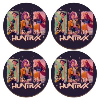 HUNTR/X K-pop girl group, ΣΕΤ x4 Σουβέρ ξύλινα στρογγυλά plywood (9cm)