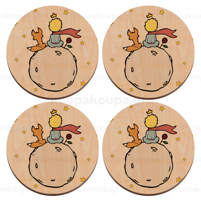 Little prince, ΣΕΤ x4 Σουβέρ ξύλινα στρογγυλά plywood (9cm)