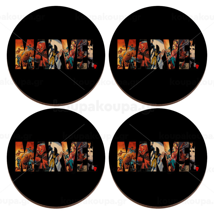 MARVEL Black, ΣΕΤ x4 Σουβέρ ξύλινα στρογγυλά plywood (9cm)