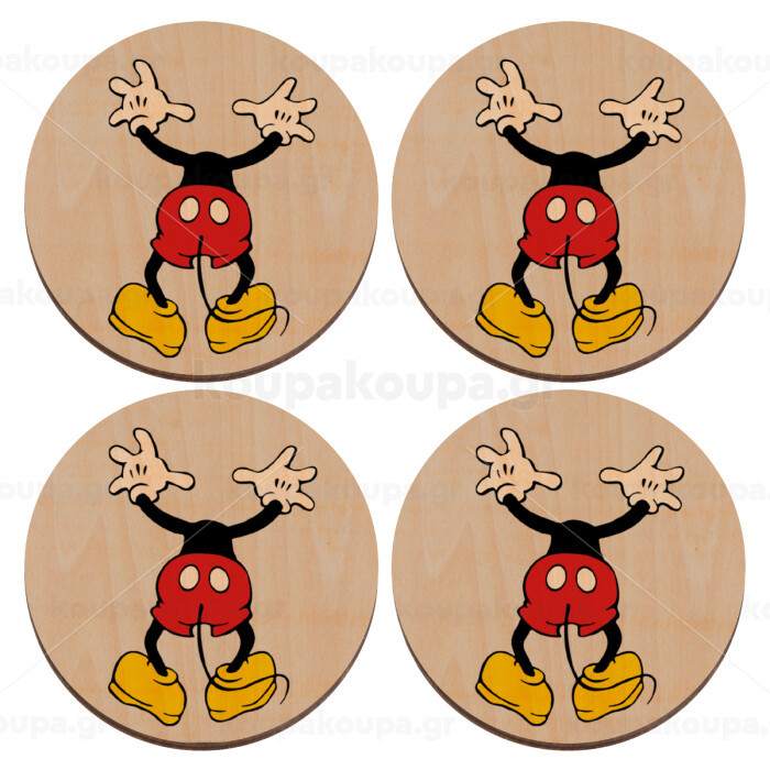 Mickey hide..., ΣΕΤ x4 Σουβέρ ξύλινα στρογγυλά plywood (9cm)