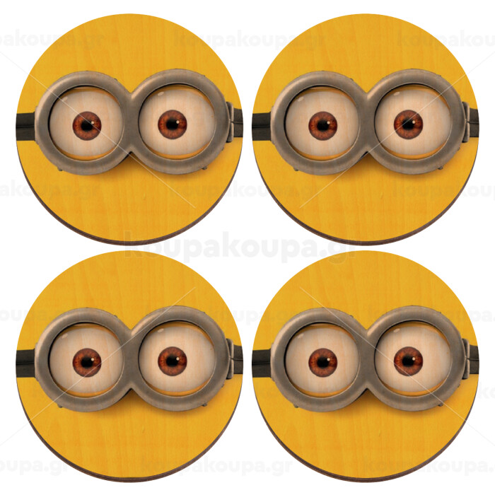 Minions, ΣΕΤ x4 Σουβέρ ξύλινα στρογγυλά plywood (9cm)