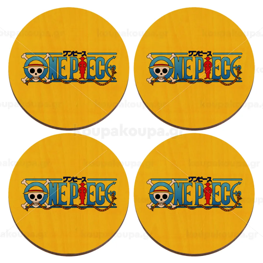 Onepiece logo, ΣΕΤ x4 Σουβέρ ξύλινα στρογγυλά plywood (9cm)