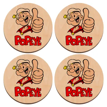 Popeye the sailor man, ΣΕΤ x4 Σουβέρ ξύλινα στρογγυλά plywood (9cm)