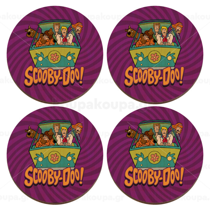 Scooby Doo car, ΣΕΤ x4 Σουβέρ ξύλινα στρογγυλά plywood (9cm)