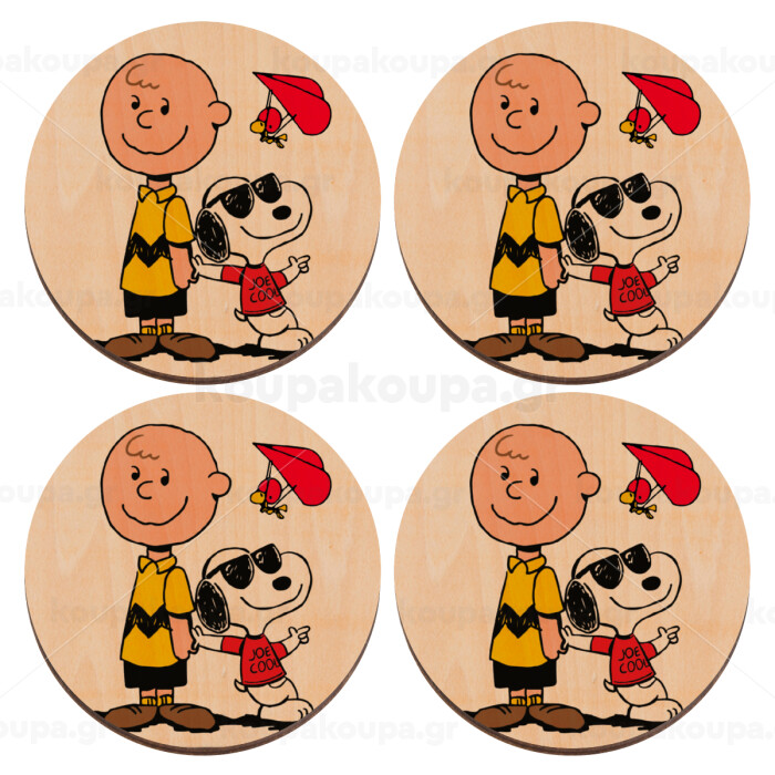 Snoopy & Joe, ΣΕΤ x4 Σουβέρ ξύλινα στρογγυλά plywood (9cm)