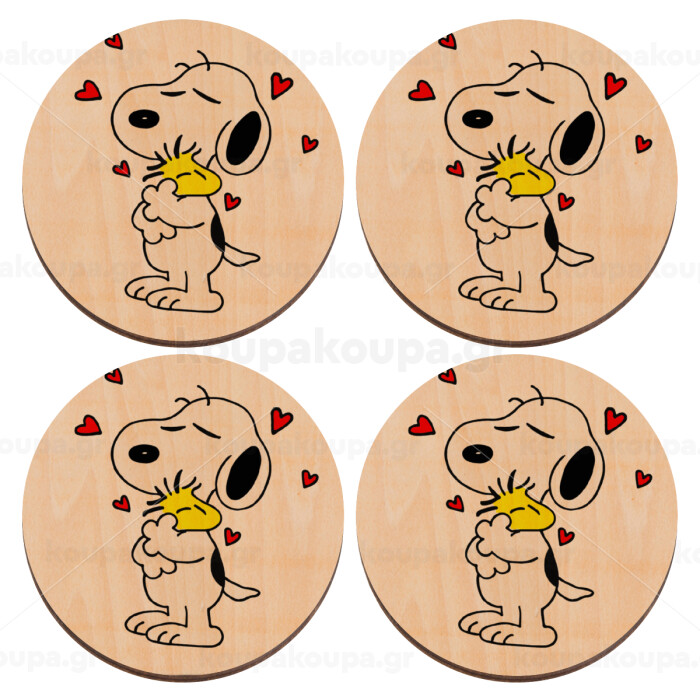 Snoopy Love, ΣΕΤ x4 Σουβέρ ξύλινα στρογγυλά plywood (9cm)