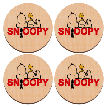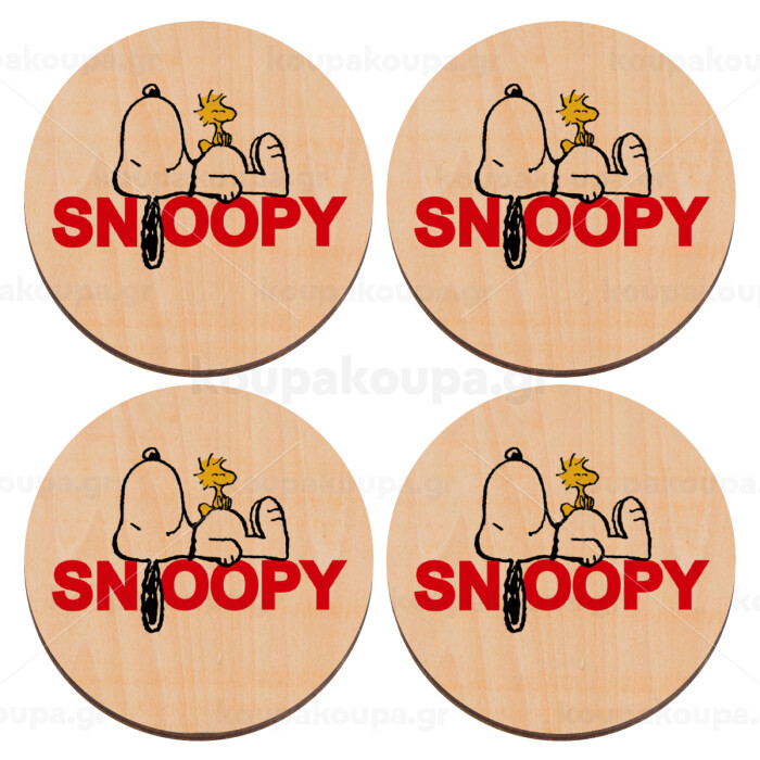 Snoopy sleep, ΣΕΤ x4 Σουβέρ ξύλινα στρογγυλά plywood (9cm)