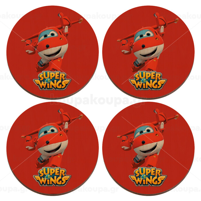 Super Wings, ΣΕΤ x4 Σουβέρ ξύλινα στρογγυλά plywood (9cm)