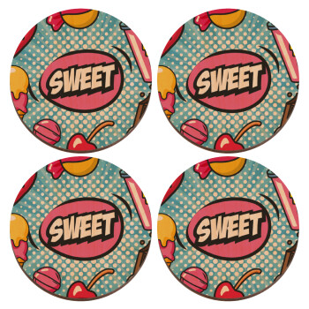SWEET, ΣΕΤ x4 Σουβέρ ξύλινα στρογγυλά plywood (9cm)