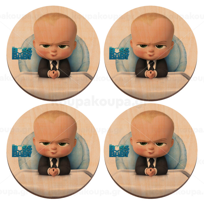 The boss baby, ΣΕΤ x4 Σουβέρ ξύλινα στρογγυλά plywood (9cm)