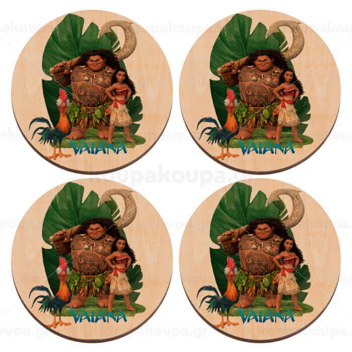 Vaiana, ΣΕΤ x4 Σουβέρ ξύλινα στρογγυλά plywood (9cm)
