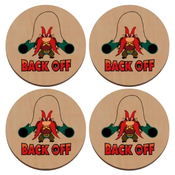 Yosemite Sam Back OFF, ΣΕΤ x4 Σουβέρ ξύλινα στρογγυλά plywood (9cm)