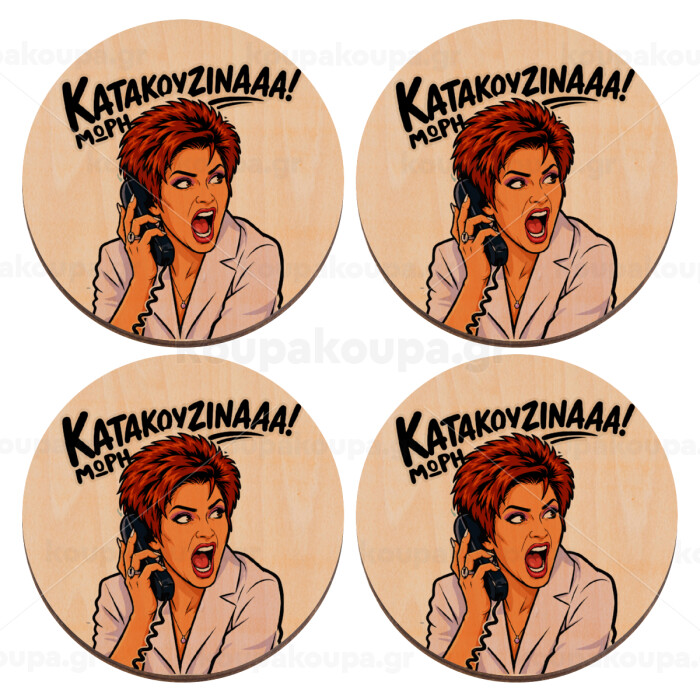 Μωρή Κατακουζίνα, ΣΕΤ x4 Σουβέρ ξύλινα στρογγυλά plywood (9cm)