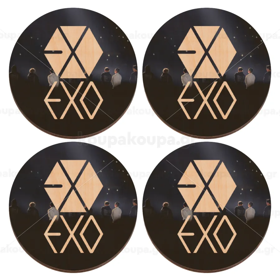 EXO Band korea, ΣΕΤ x4 Σουβέρ ξύλινα στρογγυλά plywood (9cm)
