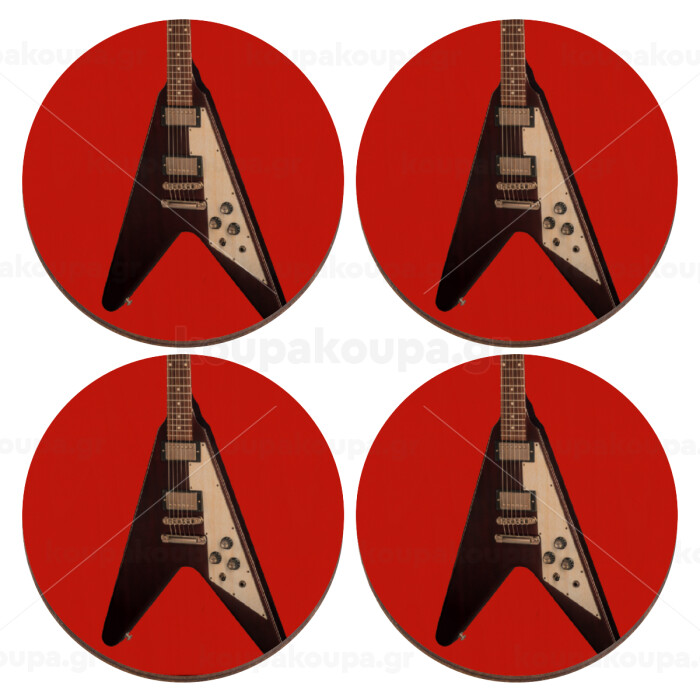 Guitar flying V, ΣΕΤ x4 Σουβέρ ξύλινα στρογγυλά plywood (9cm)