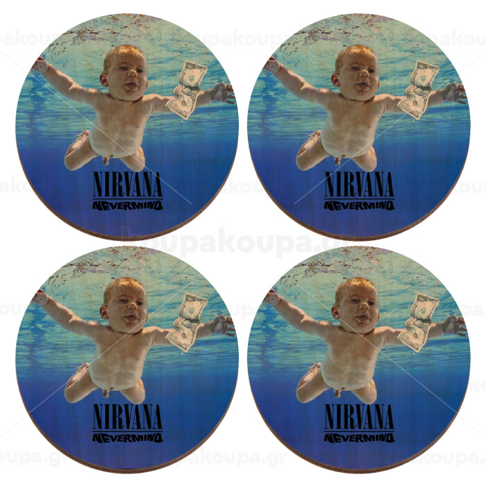 Nirvana nevermind, ΣΕΤ x4 Σουβέρ ξύλινα στρογγυλά plywood (9cm)
