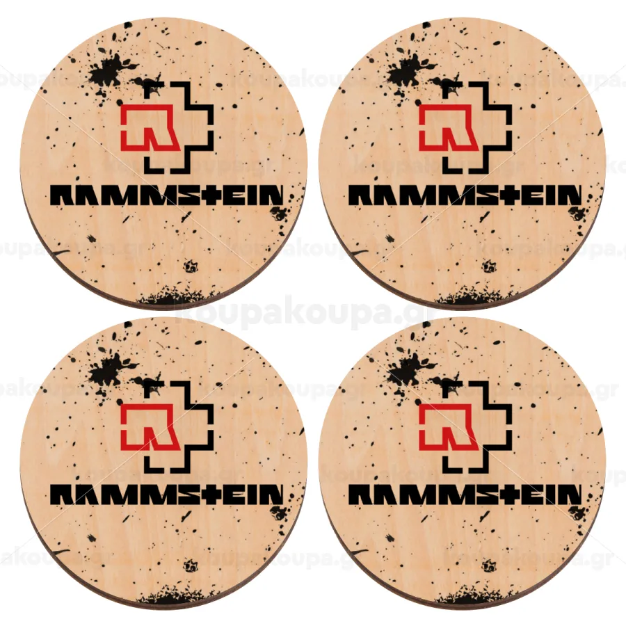 Rammstein, ΣΕΤ x4 Σουβέρ ξύλινα στρογγυλά plywood (9cm)