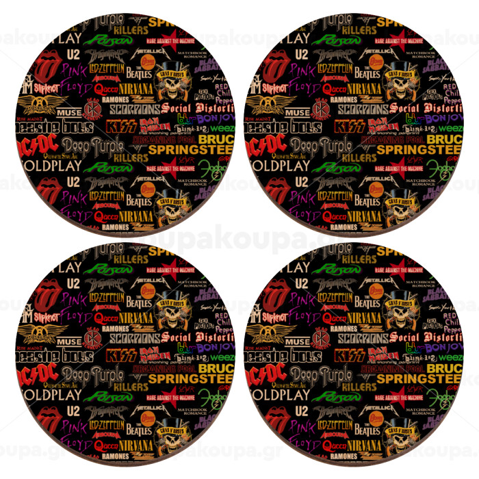 Rock Bands, ΣΕΤ x4 Σουβέρ ξύλινα στρογγυλά plywood (9cm)