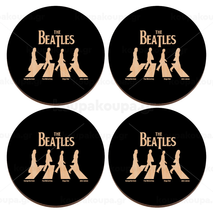 The Beatles, Abbey Road, ΣΕΤ x4 Σουβέρ ξύλινα στρογγυλά plywood (9cm)