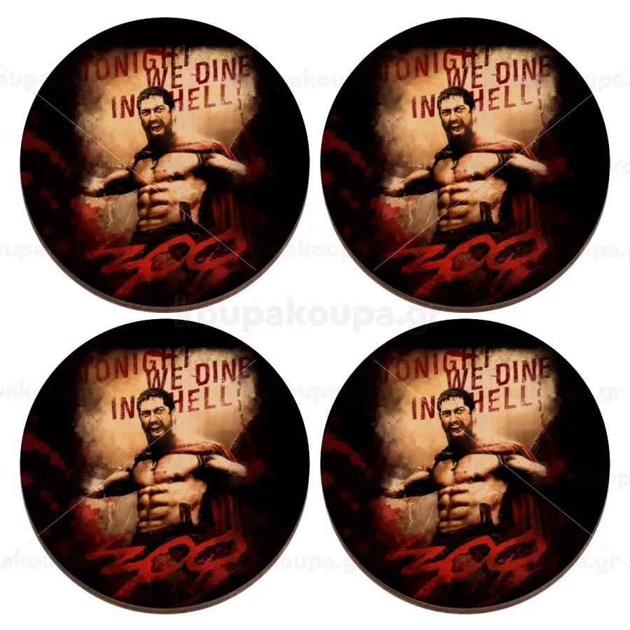 300 Tonight we dine in hell!, ΣΕΤ x4 Σουβέρ ξύλινα στρογγυλά plywood (9cm)