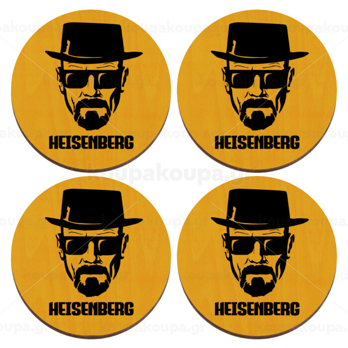 Heisenberg breaking bad, ΣΕΤ x4 Σουβέρ ξύλινα στρογγυλά plywood (9cm)