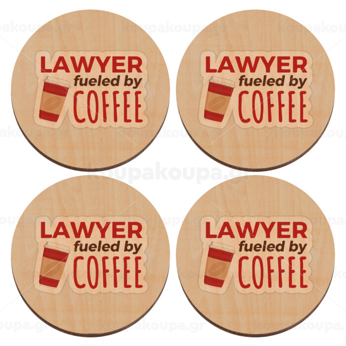 Lawyer fueled by coffee, ΣΕΤ x4 Σουβέρ ξύλινα στρογγυλά plywood (9cm)
