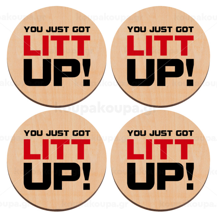 Suits You Just Got Litt Up! , ΣΕΤ x4 Σουβέρ ξύλινα στρογγυλά plywood (9cm)
