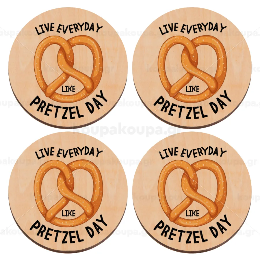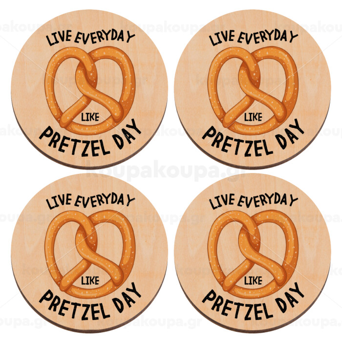 The office, Live every day like pretzel day, ΣΕΤ x4 Σουβέρ ξύλινα στρογγυλά plywood (9cm)