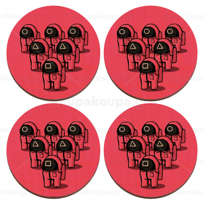 The squid game among us, ΣΕΤ x4 Σουβέρ ξύλινα στρογγυλά plywood (9cm)