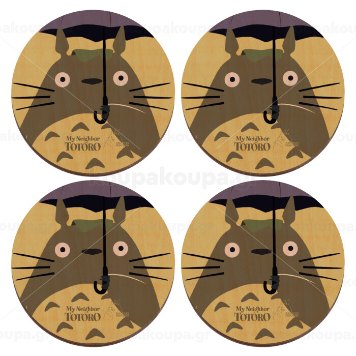 Totoro from My Neighbor Totoro, ΣΕΤ x4 Σουβέρ ξύλινα στρογγυλά plywood (9cm)