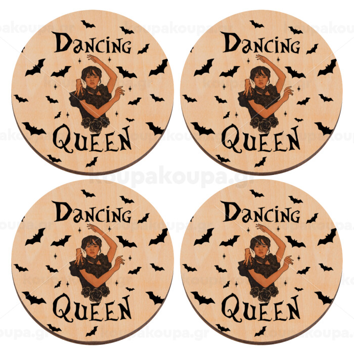 Wednesday Addams Dance, ΣΕΤ x4 Σουβέρ ξύλινα στρογγυλά plywood (9cm)
