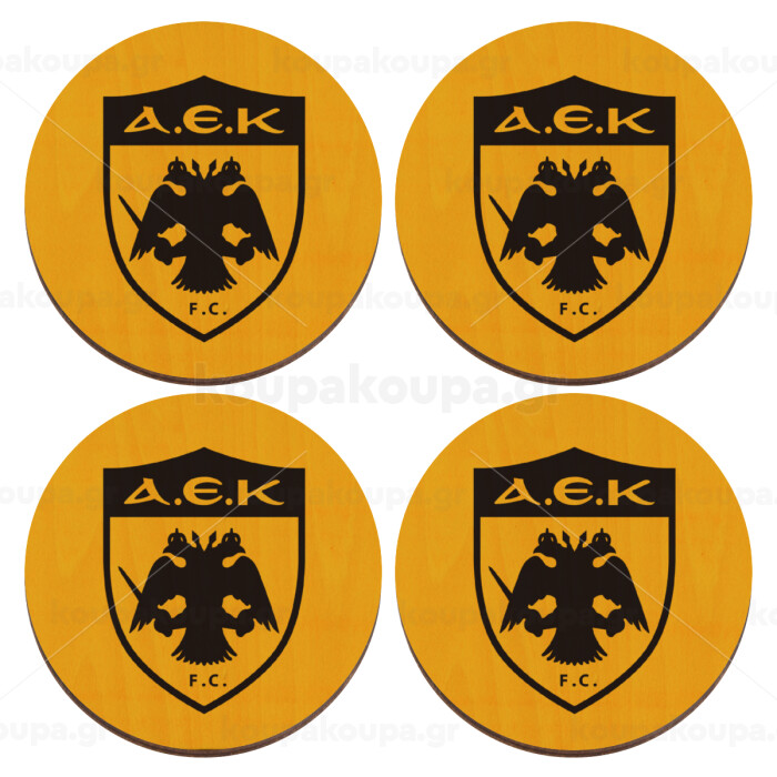 ΑΕΚ, ΣΕΤ x4 Σουβέρ ξύλινα στρογγυλά plywood (9cm)