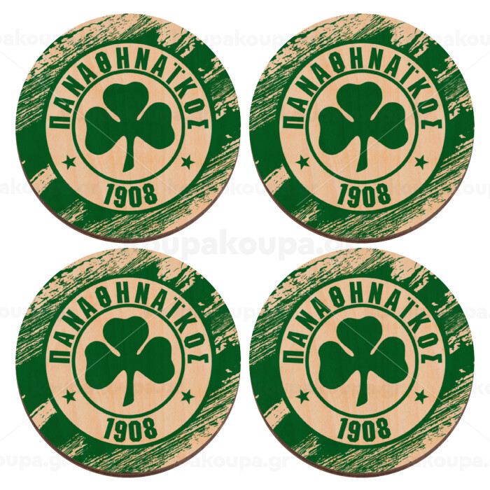 Π.Α.Ο., ΣΕΤ x4 Σουβέρ ξύλινα στρογγυλά plywood (9cm)