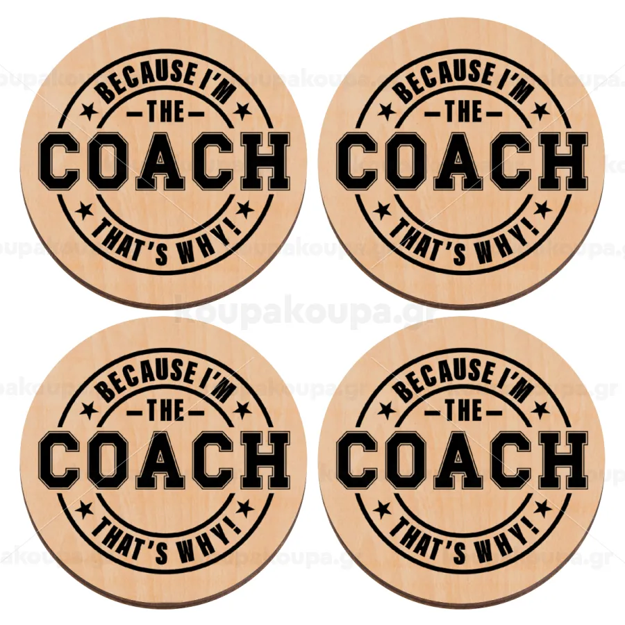 Because i'm the Coach, ΣΕΤ x4 Σουβέρ ξύλινα στρογγυλά plywood (9cm)