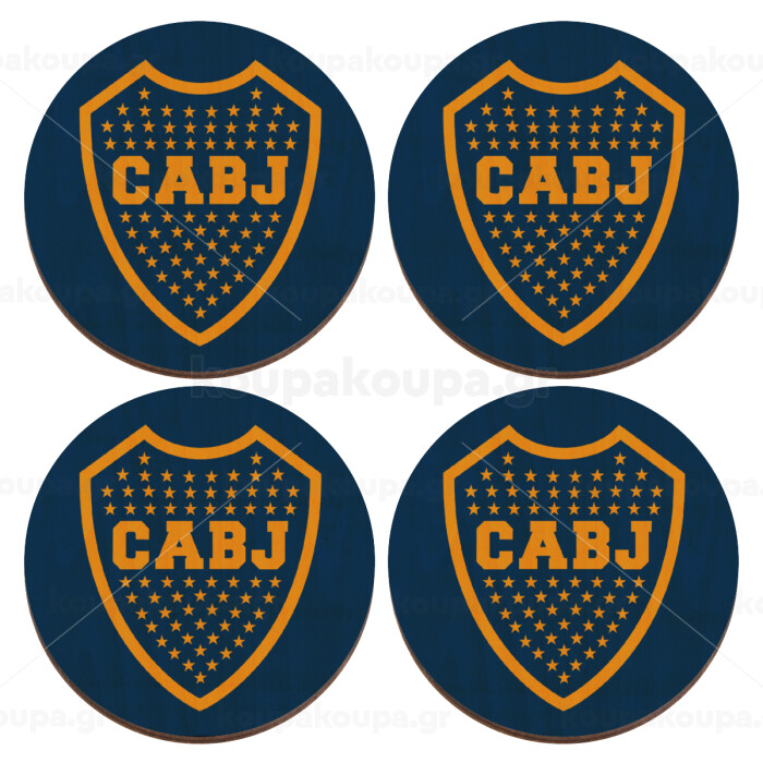 Club Atlético Boca Juniors, ΣΕΤ x4 Σουβέρ ξύλινα στρογγυλά plywood (9cm)