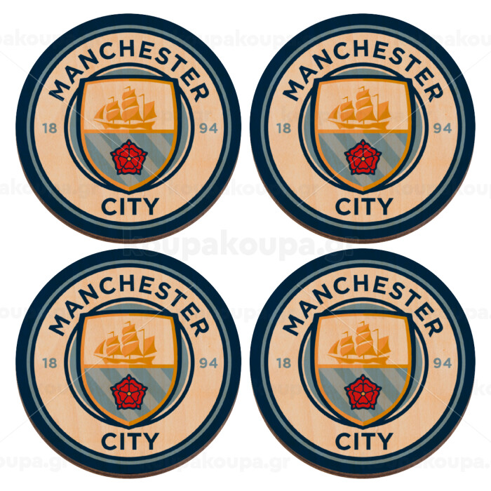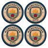 Manchester City FC , ΣΕΤ x4 Σουβέρ ξύλινα στρογγυλά plywood (9cm)