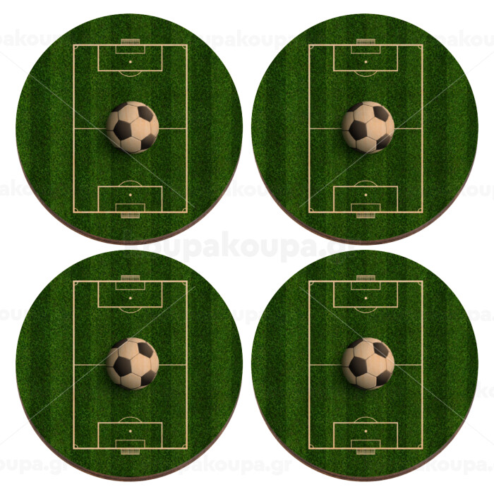Soccer field, Γήπεδο ποδοσφαίρου, ΣΕΤ x4 Σουβέρ ξύλινα στρογγυλά plywood (9cm)