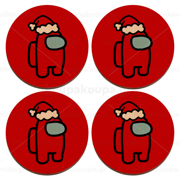 Among US Santa, ΣΕΤ x4 Σουβέρ ξύλινα στρογγυλά plywood (9cm)