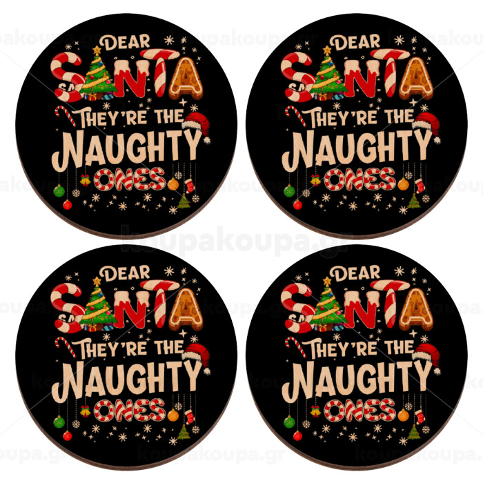 Dear santa they're the naughty , ΣΕΤ x4 Σουβέρ ξύλινα στρογγυλά plywood (9cm)