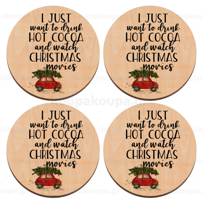 I just want to drink hot cocoa and watch christmas movies mini cooper, ΣΕΤ x4 Σουβέρ ξύλινα στρογγυλά plywood (9cm)