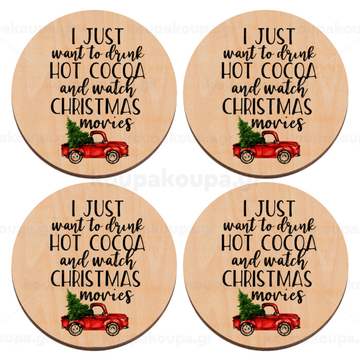 I just want to drink hot cocoa and watch christmas movies pickup car, ΣΕΤ x4 Σουβέρ ξύλινα στρογγυλά plywood (9cm)