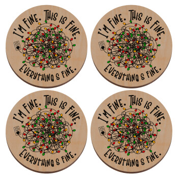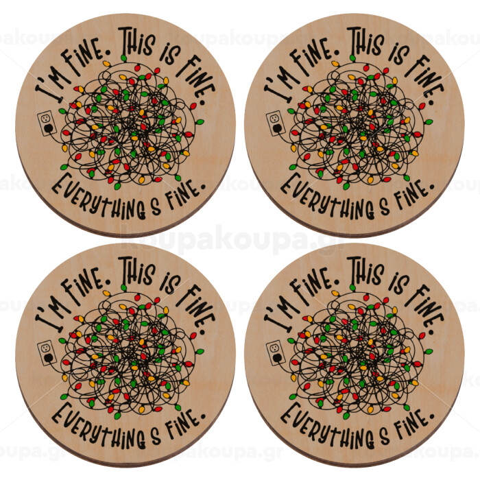 It's Fine I'm Fine Everything Is Fine, ΣΕΤ x4 Σουβέρ ξύλινα στρογγυλά plywood (9cm)