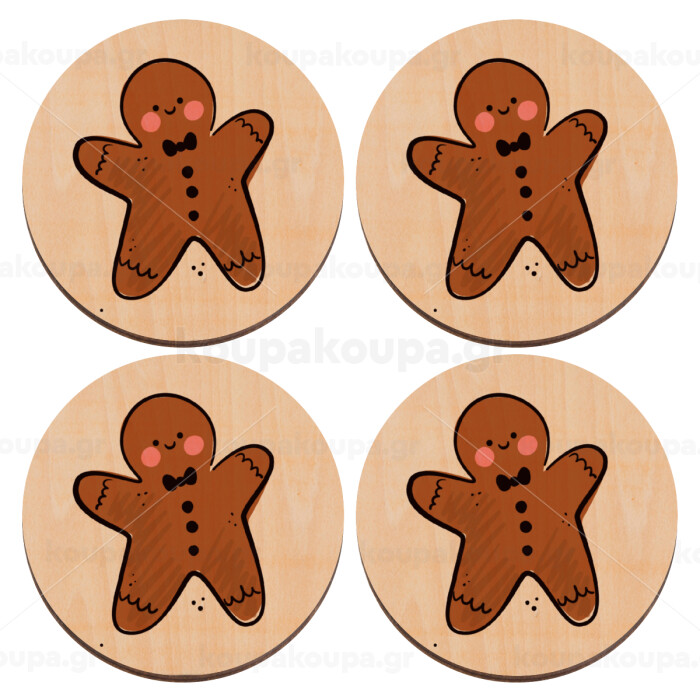 mr gingerbread, ΣΕΤ x4 Σουβέρ ξύλινα στρογγυλά plywood (9cm)